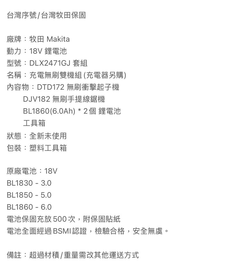 含稅 MAKITA 牧田 18V充電式無刷超值 雙機組 DTD172+DJV182 DLX2471GJ